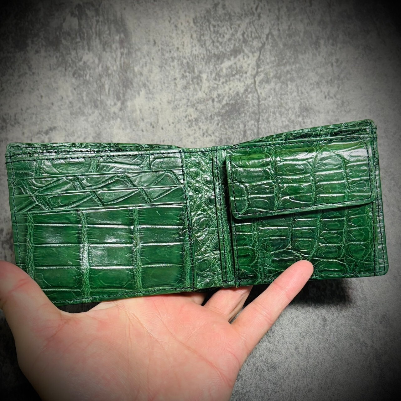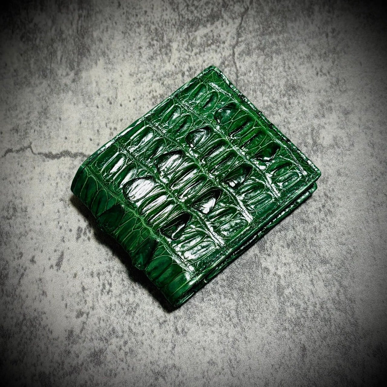 『皮革の王様』と言われるクロコダイルを『無双』仕立てで仕上げた希少性の高い折財布です。