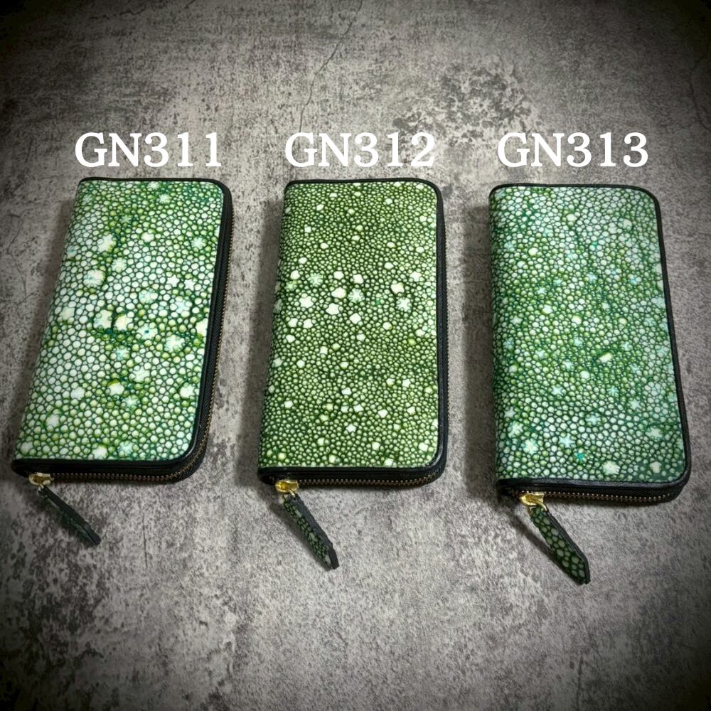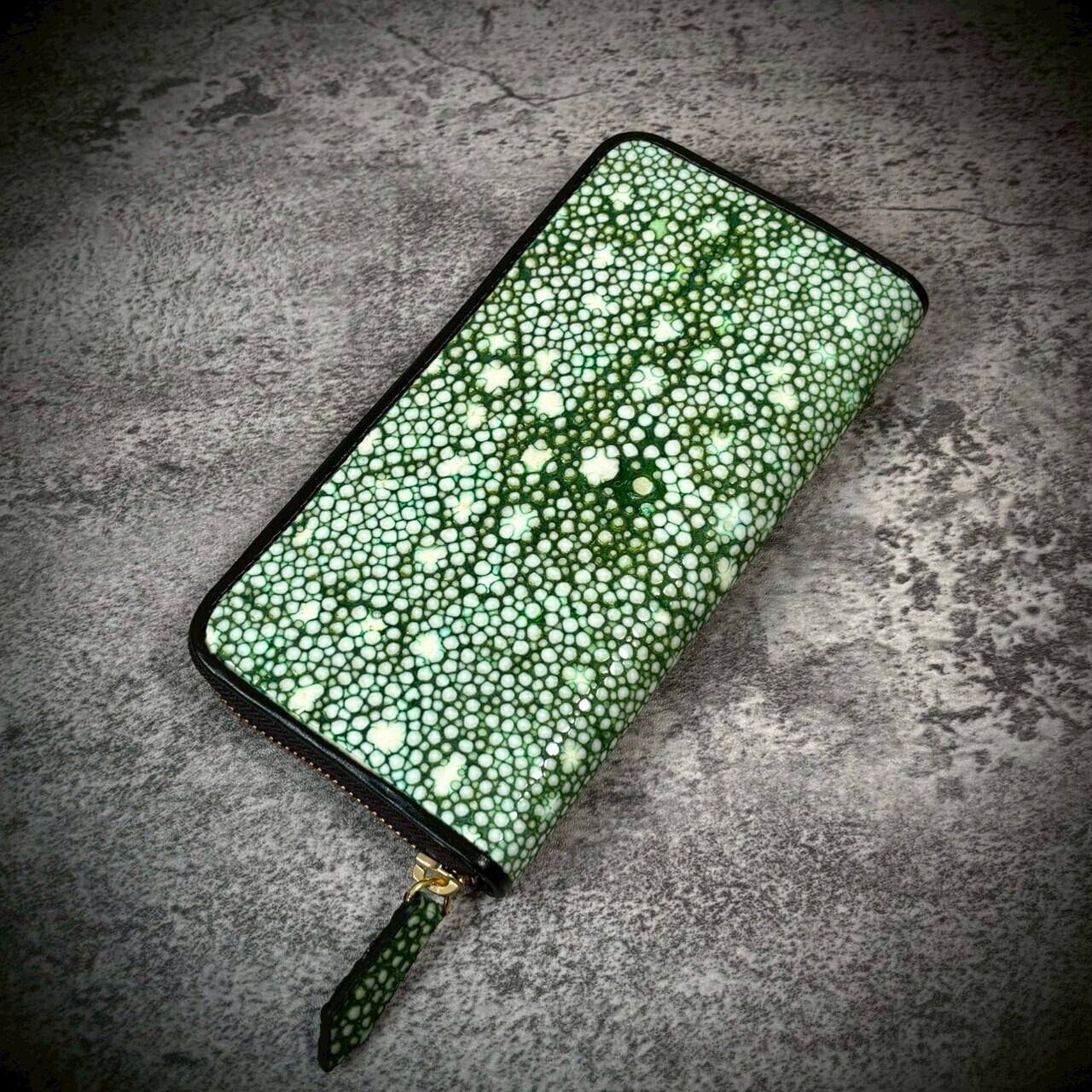 スタースティングレイ 長財布 エイ革 一枚革 ガルーシャ カイラギ 梅花皮 スティングレイ カード15枚 大容量 グリーン 緑 メンズ レディス プレゼント ギフト