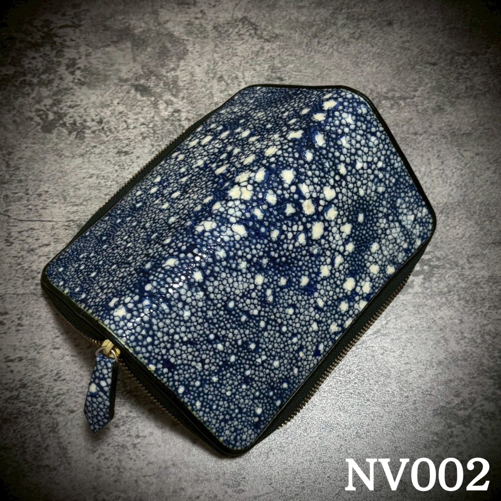 スタースティングレイ 長財布 エイ革 一枚革 ガルーシャ 梅花皮 カイラギ スティングレイ カード18枚 大容量 ネイビー 紺 メンズ レディス プレゼント ギフト