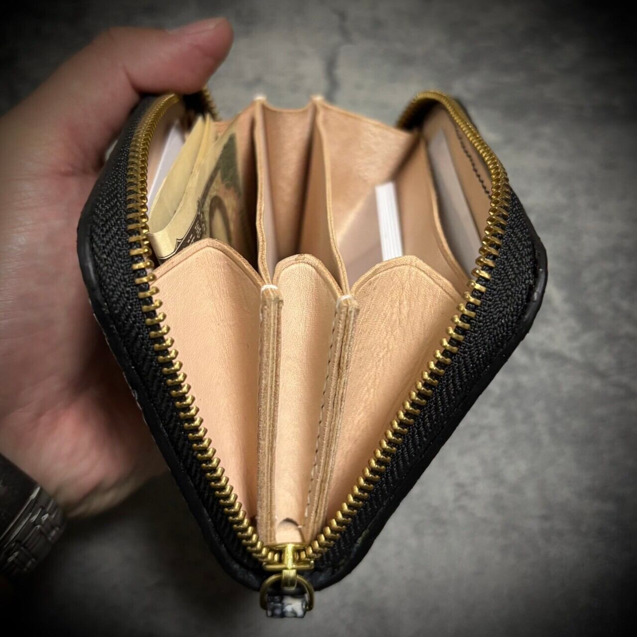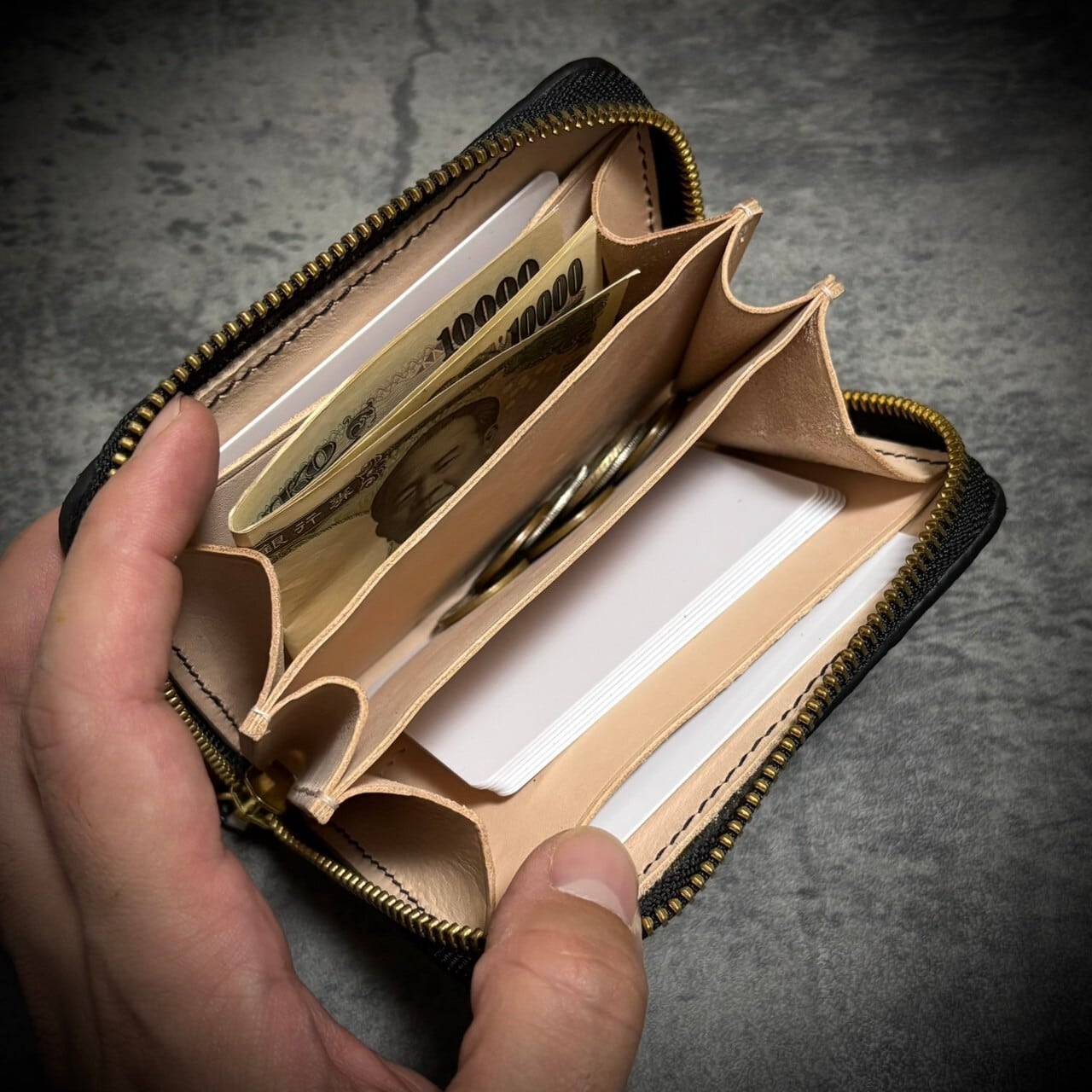 パッと開いて中身が見やすく紙幣、カード、小銭入れがストレスなく出し入れできます。