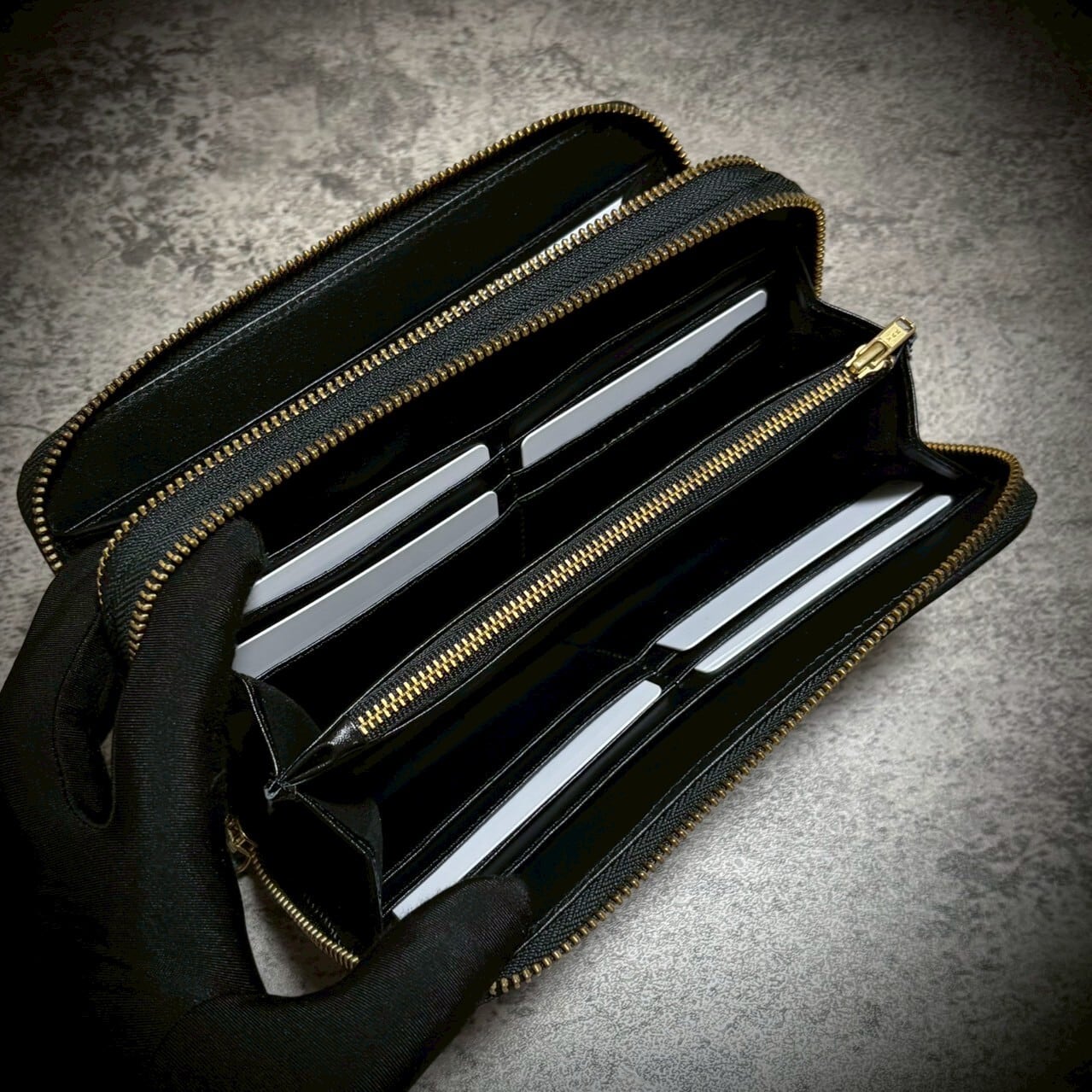 ダブルファスナーならではの抜群の収納力。お札で200枚収納が可能。