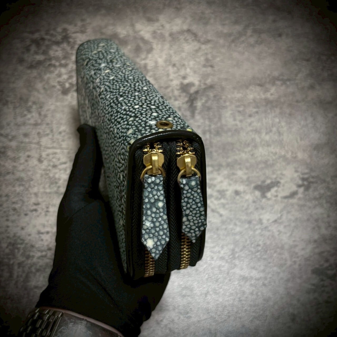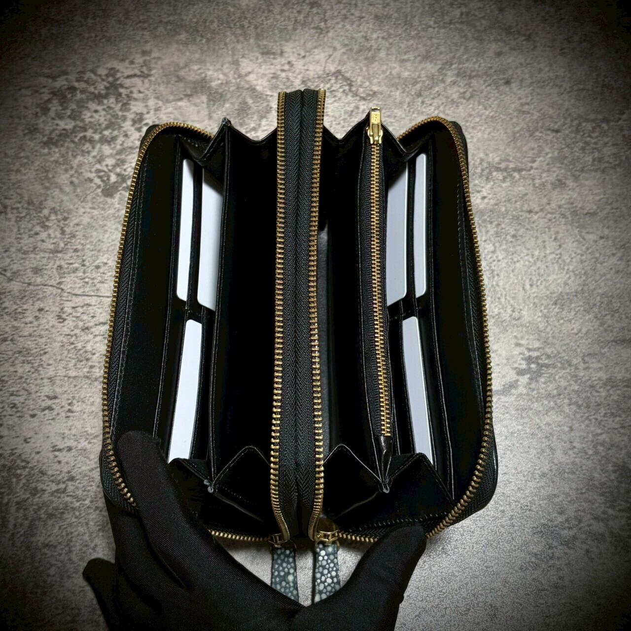 本商品はそのスタースティングレイを一枚革で仕上げた大容量ダブルジッパーウォレットです。