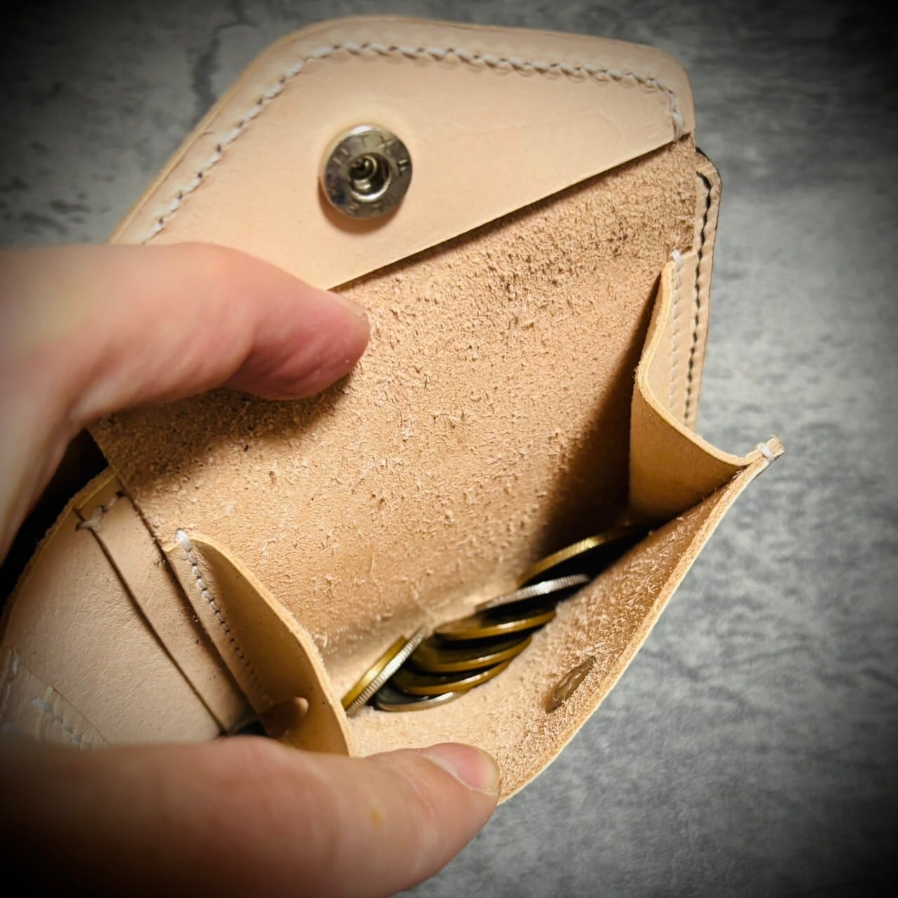 内面の素材は牛革のヌメ革を使用。経年変化を楽しむことができます。