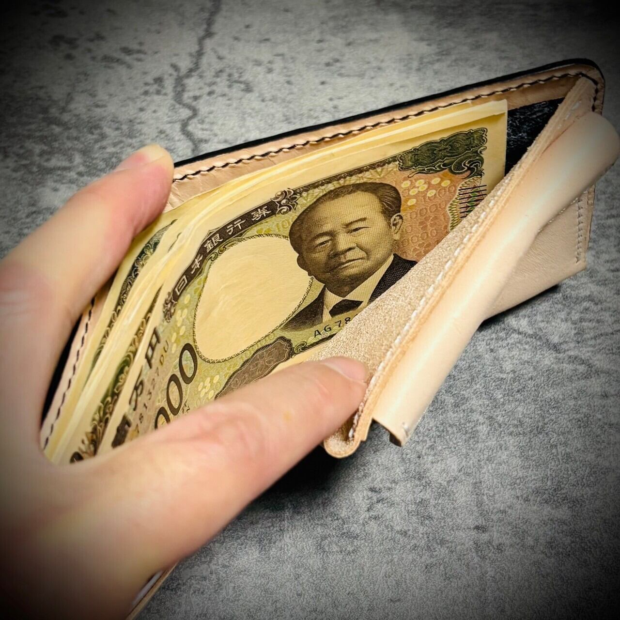 じっくり育ててあなたの色に。使う人の癖まで色に現れる艶やかなヌメ革を楽しめるお財布です。革はソフトなヌメ革なので柔らかく、カードやお金の出し入れもしやすいです。