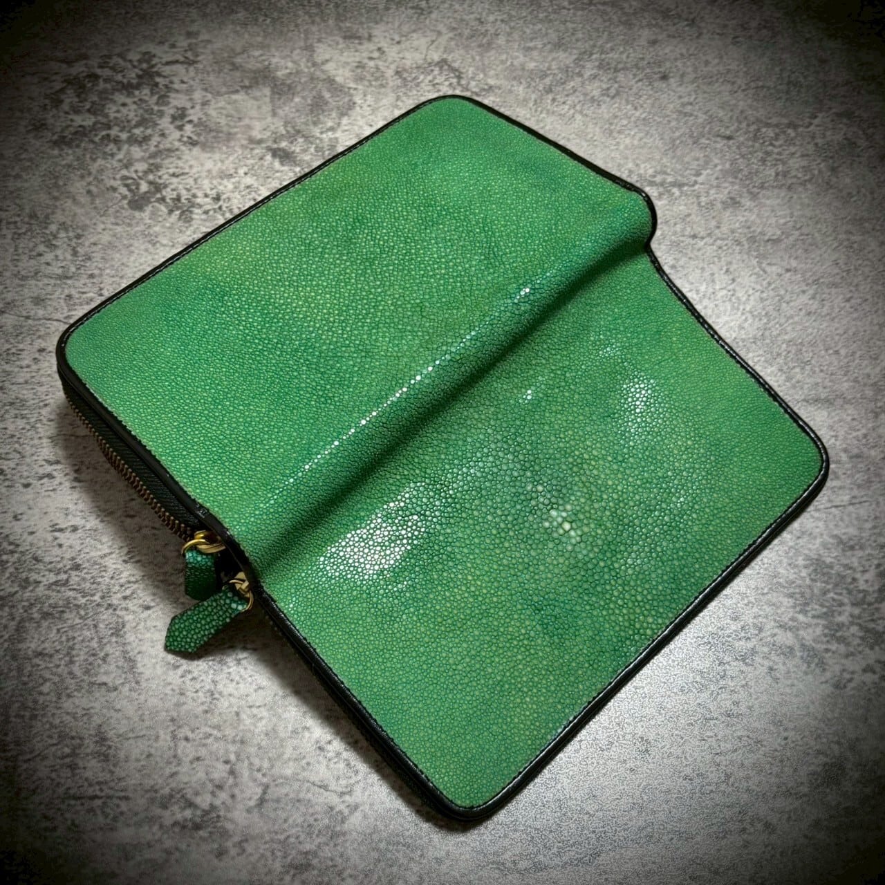 海の宝石と言われる”スティングレイ革”を使用した大容量ダブルジッパー長財布。