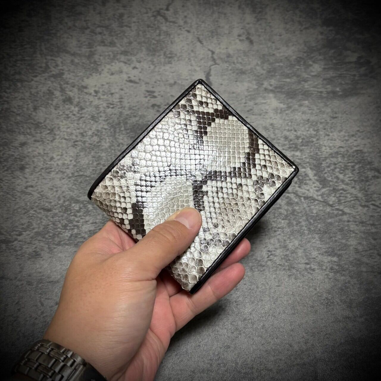 パイソン レザー 折財布 二つ折り 財布 ヘビ革 蛇革 コンパクト ミニ財布 革財布 メンズ レディス ギフトBOX付 プレゼント ラッピング