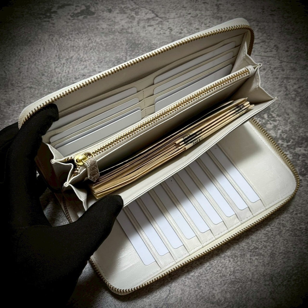 使用するのは、クロコダイルの中でも最も価値が高い腹部の部位。さらにマット加工を施し、しっとりとした手触りが持つ人を魅了します。