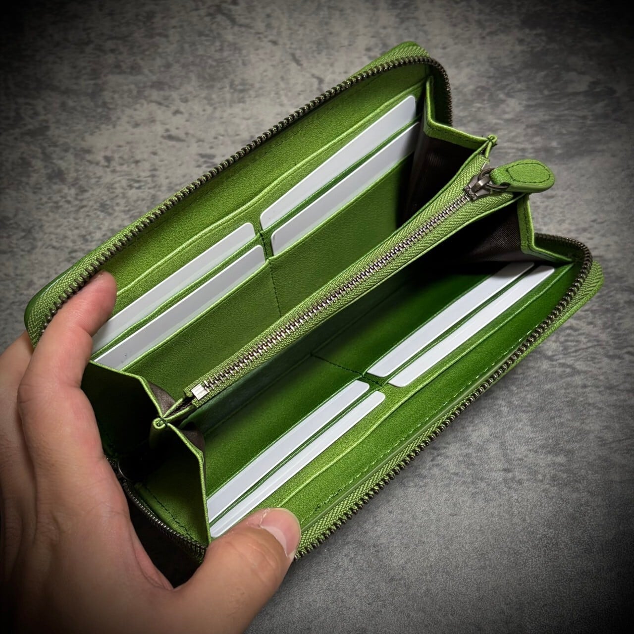 この長財布は、天然のシープスキンを贅沢に使用しています。
