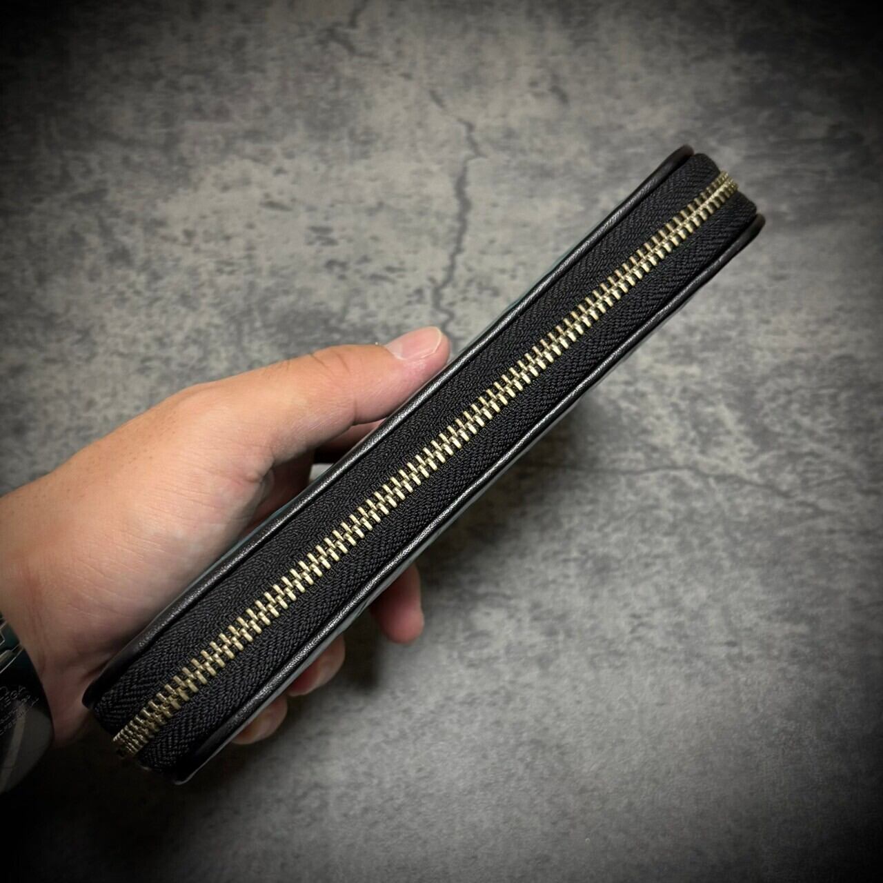 この一枚革の長財布は、贅沢なクロコダイルとパイソンの組み合わせで、存在感抜群。