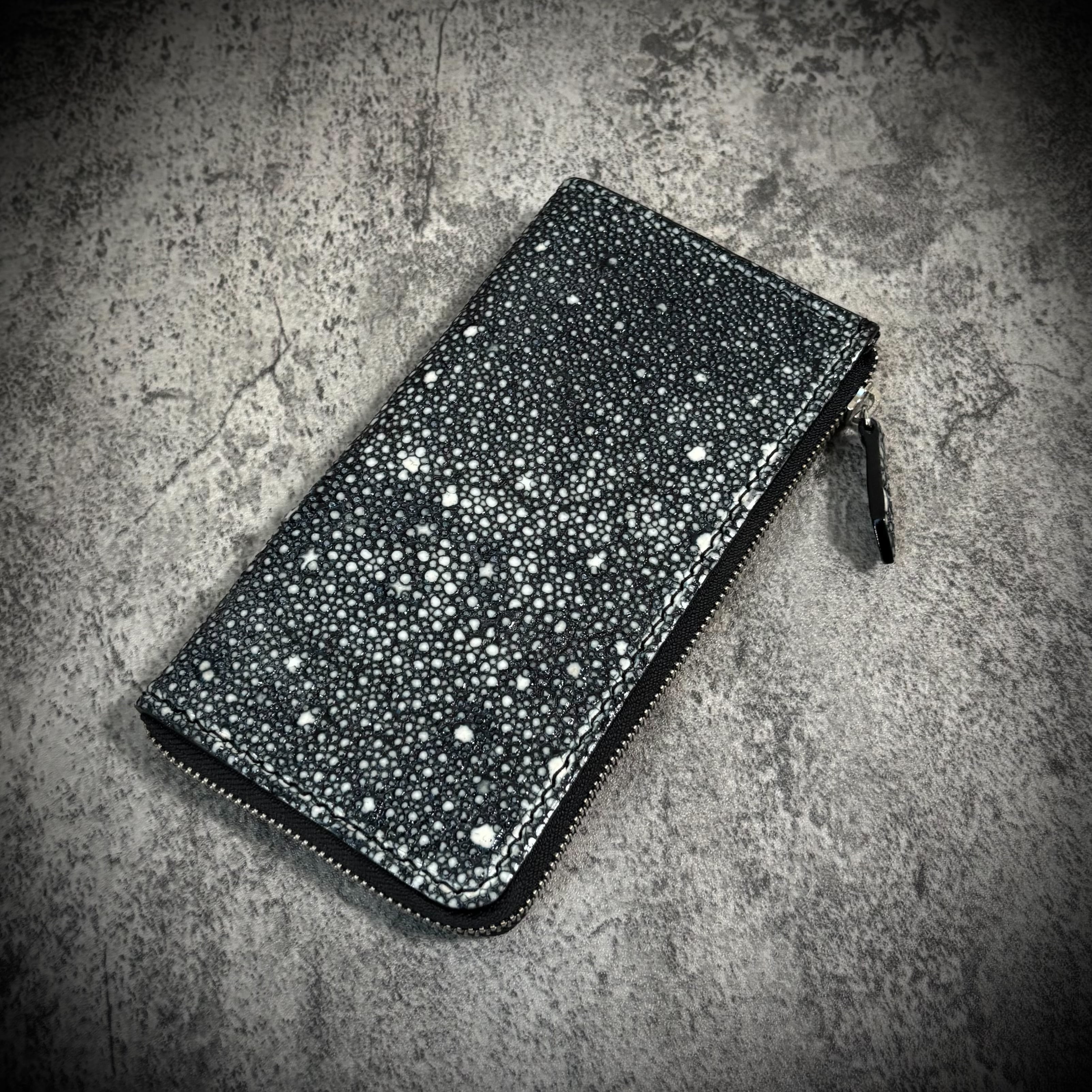 スタースティングレイ 総手縫い L字ファスナー 長財布 カイラギ エイ革 ガルーシャ ハンドメイド ブラック 黒 プレゼント ギフト ラッピング